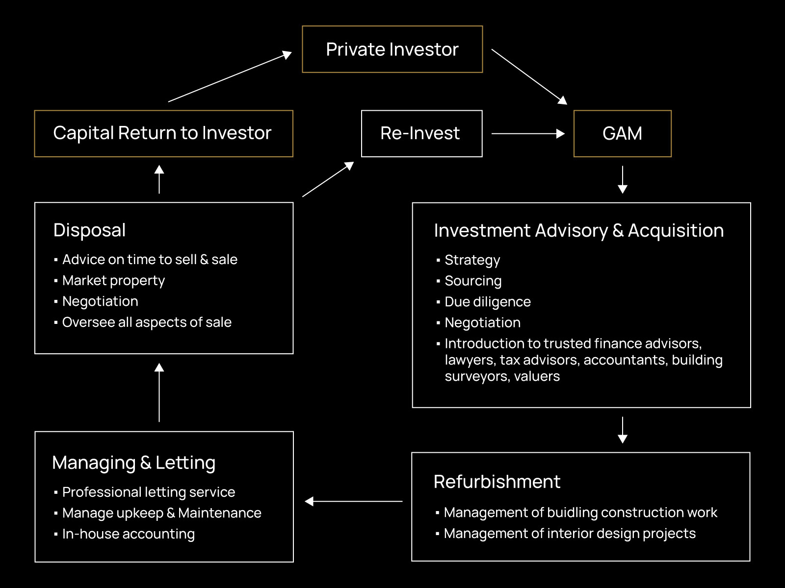 We cover a full-spectrum of tailored property investments across: Fund Management platform, Private Equity, placement deals, Commercial, (office, retail, warehouses) Residential (Buy-to-Let), Student accommodation , Private care homes etc.
